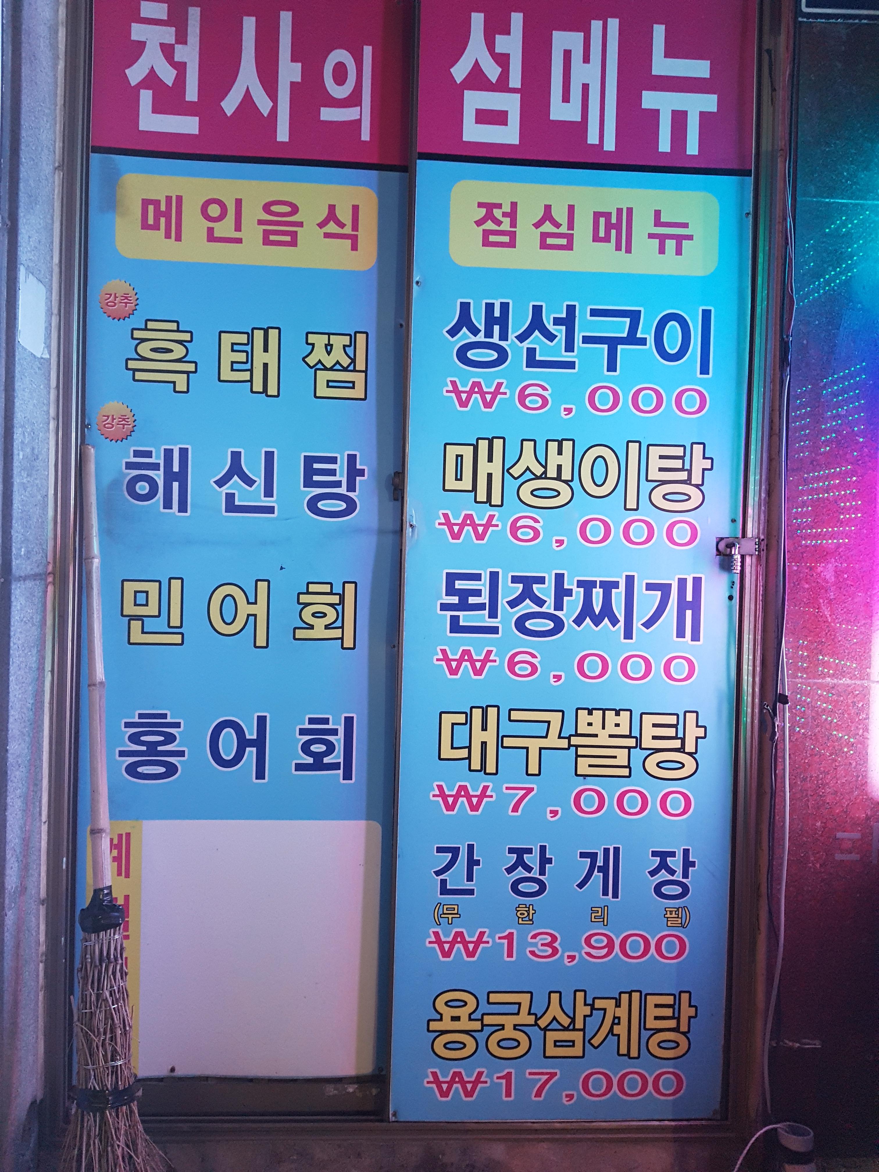 간판만 봐서는 무슨 음식점인줄 모르겠는데 메뉴를 보니 해산물요리 하는 음식점..