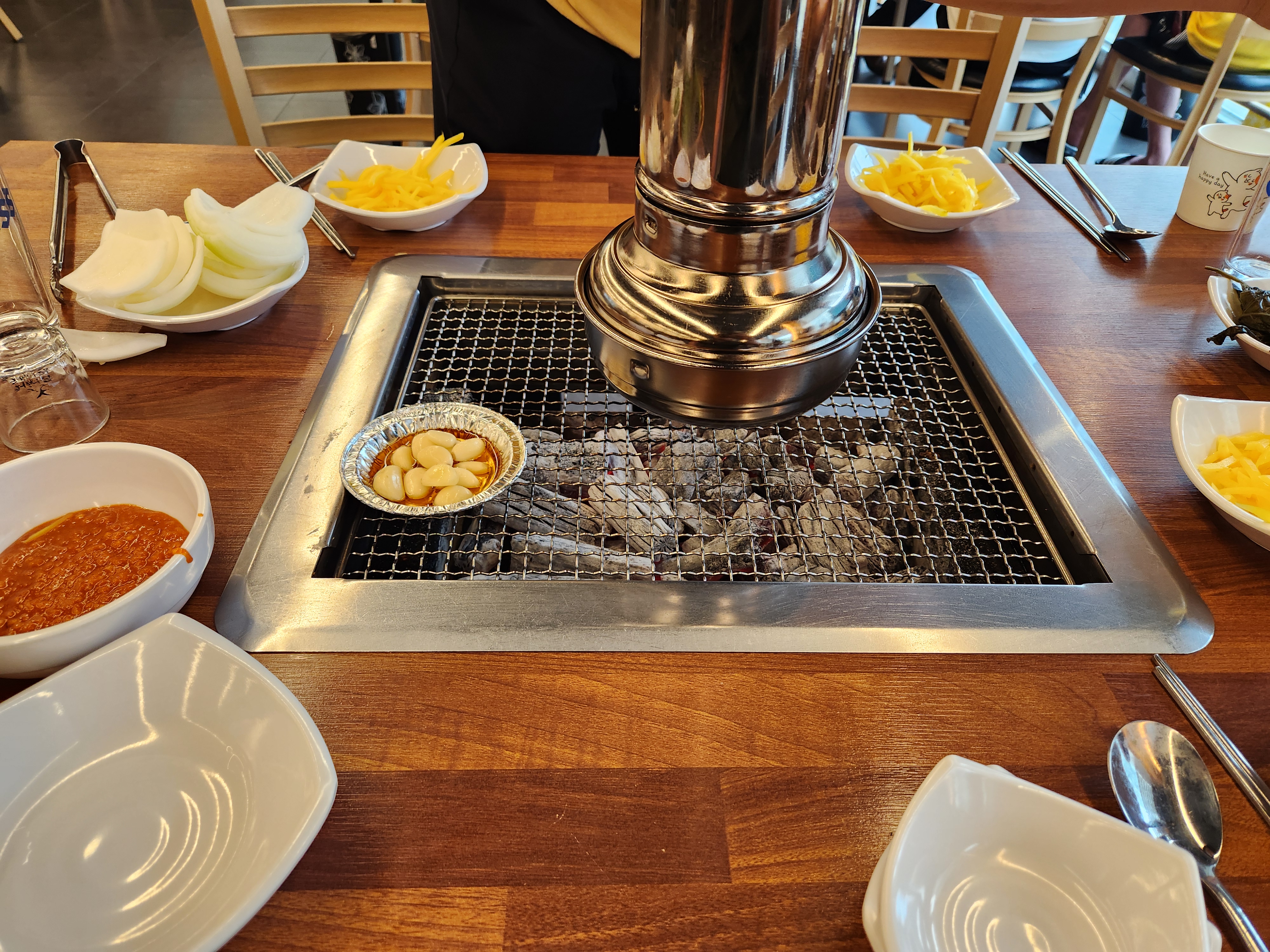 테이블 2개를 잡아서 셀프로 굽고 있어요.